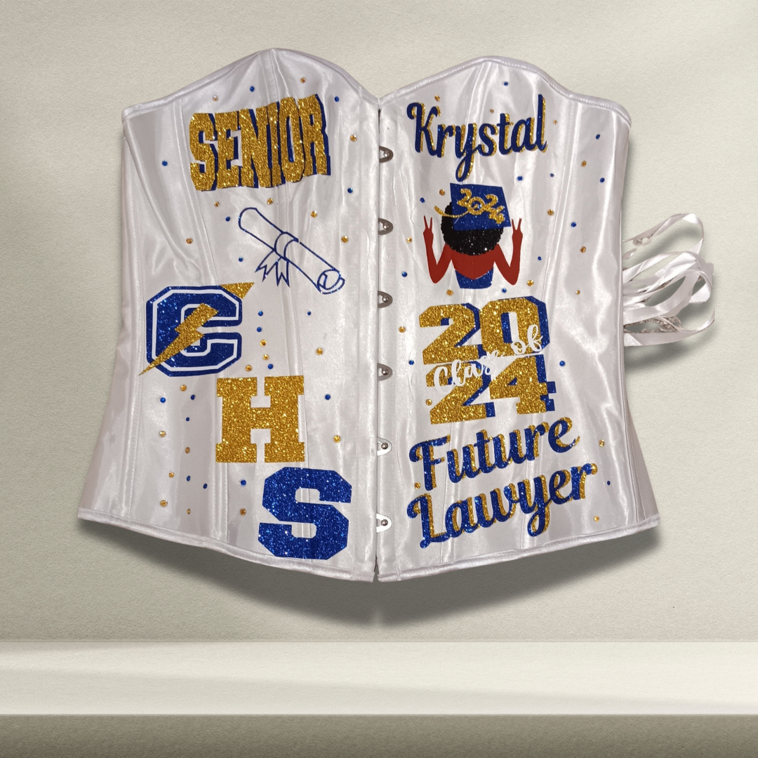 Custom designed corset perfect to wear for graduation, birthday or photo shoot! Let us bring your vision to life.